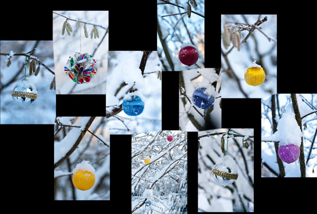 Went for a photowalk after yesterday’s snowmageddon and found a tree decorated with Christmas baubles on the River Rea Route, Stirchley branch. Aren’t they pretty!