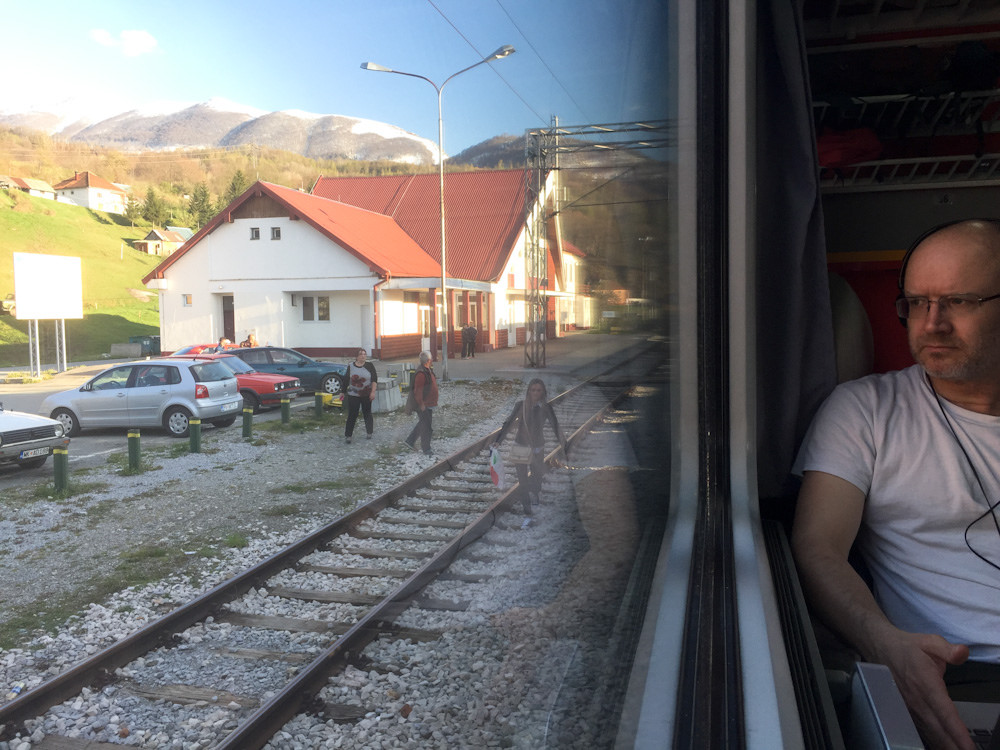 Thanks to Mr Popovic we know the train has been declassified so we quickly shift to first class, which is slightly nicer with reclining seats and a clear window. We settle down to pass the time, me looking, Pete reading.