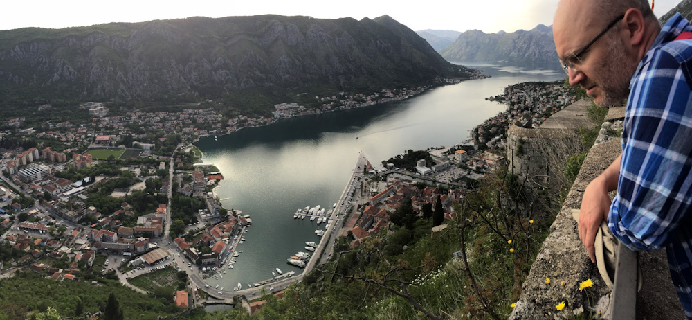 It’s 24 degrees and we are wearing shorts and sun cream and sun hats. This has been the hardest trip to pack for: just a week ago I was up in the snow-covered Alps. We spend almost all day at ‘home’ in our Muo apartment, lounging and reading and writing and admiring the fjord-like Bay of Kotor and the Unesco Heritage Site of Kotor with its walled, almost triangular Stari Grad (old town).