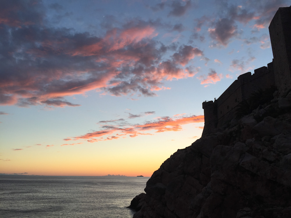 Once the storm clears, it is indeed truly lovely inside the Unesco World Heritage Site of Dubrovnik, so clean. I mean, really clean. (Well, all that tourist money has to go somewhere I guess.) We enter it at sunset so that we can immediately leave it, as Stijepo has sent us for a sunset drink at Buza, a well-known drinking hole on the rocks outside the wall. Pete nearly chokes on his £6 GOT-priced Leffe but it’s the view we are paying for and a ringside seat for sunset in the Pearl of the Adriatic.