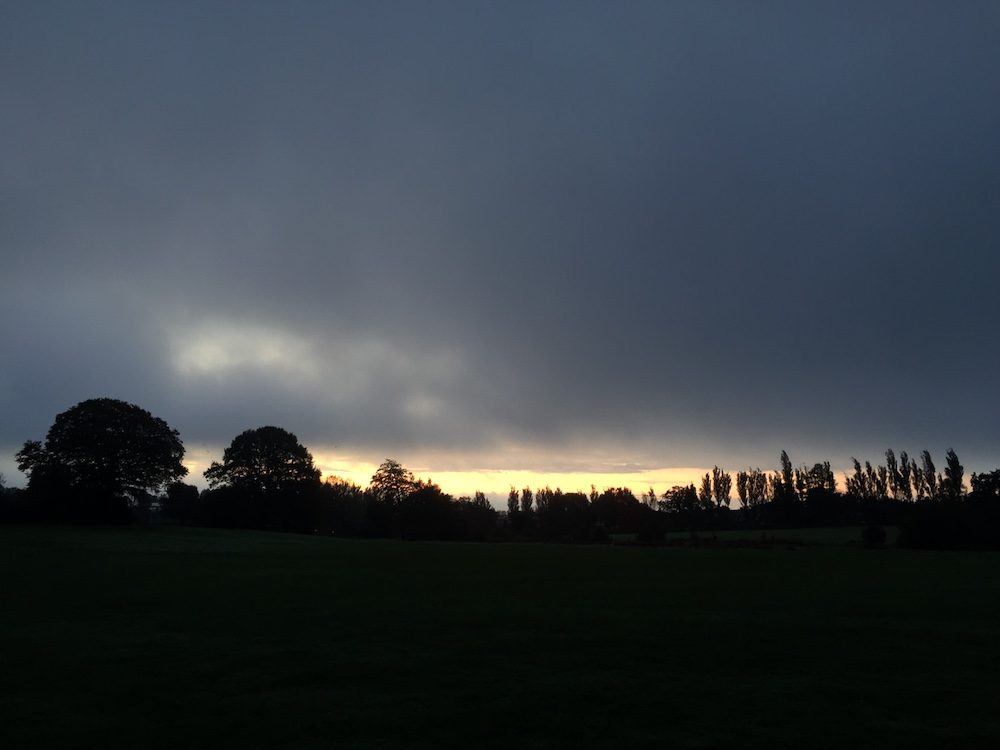 Of course, what you want is the awesome sunset effect but in reverse: the bit where the skies glow red-gold before the sun actually rises. This, I learned after a bit of Duckduckgo research, is called the ‘civil twilight’ or ‘civil dawn’– when the sun is six degrees below the horizon, starting to light up the higher skies and giving enough light to see by. In Birmingham, UK, at 52 degrees north, in October, this starts around 35 minutes before sunrise. This is also normally the time I reach for my sleeping mask.