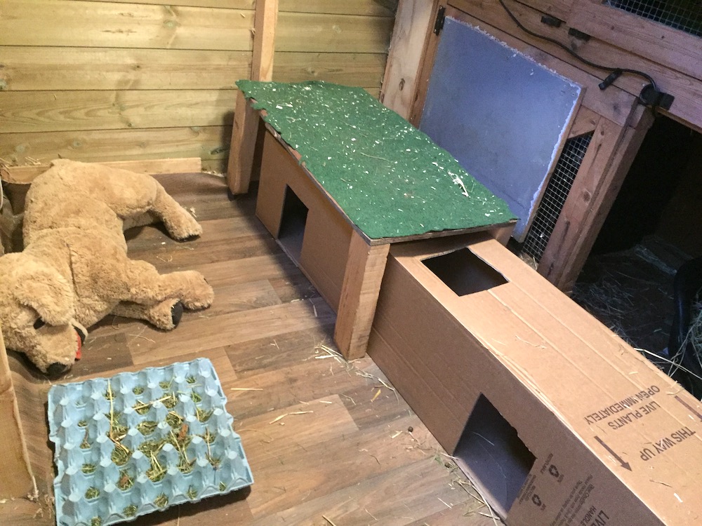 Remember that giftbox with a tree in it that I mentioned yesterday? Pete has turned it into a rabbit engagement tunnel for Clem. She hides from us there. But I am always waiting with my camera for Madame Showpony.