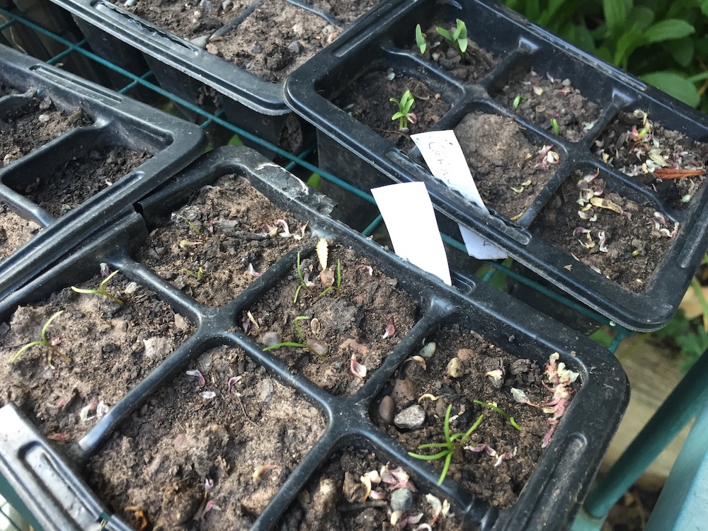 This morning I noticed that my free seeds from Sustainable Life, planted on 14th April, had finally started to sprout. The dill and coriander (for humans) and nasturtium, borage and English marigolds (for the rabbit) are on their way.